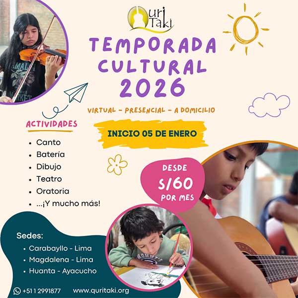 CONTACTO ✆ +51 1 2991877 ✉ info@quritaki.org ➤ Ver mapa ⏱️ L – S : 09-21h ➤ Formularios |